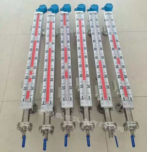 根據浮力原理,浮子在測量管內隨液位的升降而上、下移動,浮子內的永久磁鋼通過耦合作用,驅動紅、白色翻柱翻轉180°,液位上升時翻柱由白色轉為紅色,下降時由紅色轉為白色,從而實現液位指示。