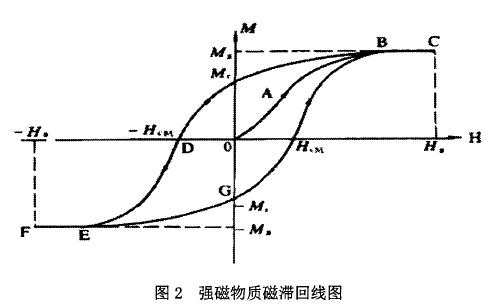 磁開關(guān)內(nèi)部裝有鐵質(zhì)的彈性簧片,在低頻磁場(chǎng)中,鐵質(zhì)簧片被磁化,從而使彈性簧片吸合導(dǎo)通,而油位計(jì)內(nèi)部磁翻板未達(dá)到磁開關(guān)動(dòng)作值的位置,所以監(jiān)控誤報(bào)油位異常信號(hào)。當(dāng)機(jī)組停機(jī)時(shí),勵(lì)磁電纜中電流消失,但此時(shí)磁開關(guān)誤動(dòng)作信號(hào)并未復(fù)歸,下面將通過(guò)磁滯回線的概念來(lái)解釋此現(xiàn)象。