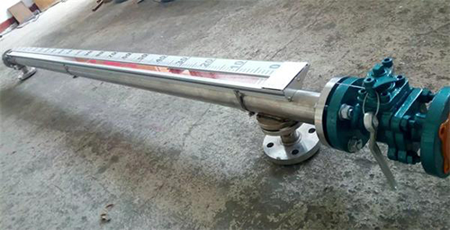 l、側(cè)裝式液位計(jì)與被測容器的上下分液管間*好各裝一只截止閥門以便打開或關(guān)閉液位計(jì);另一方面為維修液位計(jì)帶來方便。在上下截止閥關(guān)閉時(shí)可打開液位計(jì)底部排污法蘭或卸下排污螺釘,注入清水即可清洗液位計(jì)的主體。