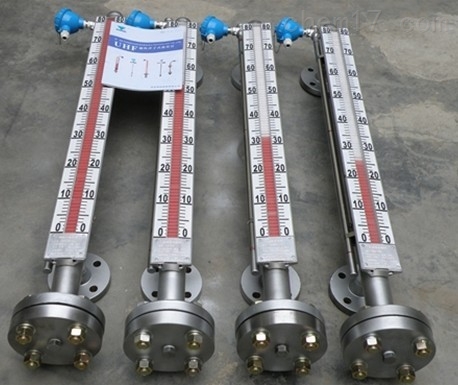 磁翻板液位計(jì)由本體、翻板箱(由紅、白雙色磁性小翻板組成)、浮子、法蘭蓋等組成,用于各類液體容器的液位測量。能用于高溫、防爆、防腐、食品飲料等場合、作液位的就地顯示或遠(yuǎn)傳顯示與控制。UHZ系列磁翻板液位計(jì)可以做到高密封、防泄漏和在高溫、高壓、高粘度、強(qiáng)腐蝕性條件下安全可靠地測量液位,全過程測量無盲區(qū)、顯示醒目,讀數(shù)直觀,并且測量范圍大,配上液位報(bào)警、控制開關(guān),可實(shí)現(xiàn)液位或界位的上下限報(bào)警和控制,配上液位變送器可將液位。界位信號(hào)轉(zhuǎn)換成二線制4~20mADC的標(biāo)準(zhǔn)信號(hào),實(shí)現(xiàn)遠(yuǎn)距離檢測、指示、記錄與控制。 UHZ系列磁翻板液位計(jì)廣泛用于電力、石油、化工、冶金、環(huán)保、船舶、建筑、食品等行業(yè)生產(chǎn)過程中的液位測量與控制。