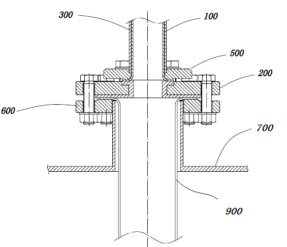 針對(duì)傳統(tǒng)頂裝式軟化水液位計(jì)的這些弊端,在多次試驗(yàn)的基礎(chǔ)上,對(duì)現(xiàn)有的內(nèi)襯工藝與結(jié)構(gòu)做了改進(jìn),發(fā)明了頂裝式軟化水液位計(jì)的一種新工藝及其結(jié)構(gòu),如下圖所示,其提供了*一連接件和連接內(nèi)襯。該連接內(nèi)襯具有用于連通內(nèi)襯連接口的*一連接口、自*一連接口向外成環(huán)形設(shè)置的*一密封部、用于與被測(cè)容器連通的*二連接口和自*二連接口向外成環(huán)形設(shè)置的*二密封部。由于該*一連接件和連接內(nèi)襯為單獨(dú)設(shè)置,可以單獨(dú)制造,因此*一密封部和*二密封部可以制作的足夠大,從而實(shí)現(xiàn)*一密封部與浮筒內(nèi)襯的翻折部密封抵接;同時(shí),連接內(nèi)襯的*二密封部用于與容器實(shí)現(xiàn)密封連接。由此,該連接內(nèi)襯可以與浮筒內(nèi)襯和容器開(kāi)口內(nèi)的護(hù)筒形成完全密封的連接,從而避免連接處的金屬面受腐蝕,使生產(chǎn)安全順利地進(jìn)行,免受因發(fā)生生產(chǎn)安全事故對(duì)生命和財(cái)產(chǎn)造成的安全威脅。