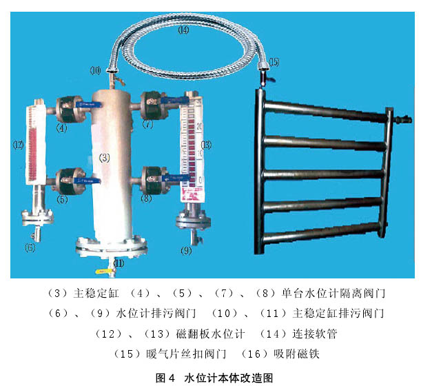 結(jié)介加熱爐水位計(jì)實(shí)際運(yùn)行研究,通過安裝磁鐵、安裝隔離控制閥門、擴(kuò)大穩(wěn)定缸容積、加裝雙水位、連接沖洗排污管線等一系列改造,將加熱爐四氟磁翻板液位計(jì)逐步改進(jìn),實(shí)現(xiàn)設(shè)備平穩(wěn)運(yùn)行。