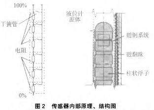 傳感器的作用是采樣液位高低位置并轉(zhuǎn)換成標(biāo)準(zhǔn)信號傳送至控制室,傳感器實際由干簧管和電阻組成。當(dāng)浮子內(nèi)磁鋼位置變化后,磁場通過器壁帶動傳感器內(nèi)干簧管觸點吸合。干簧管吸合的位置決定回路的阻抗大小,干簧管的通常位置為10mm1組?;芈返拇笮≌门c液位的高低成正比,這樣*后由置于傳感器外殼內(nèi)的變送器將電阻信號轉(zhuǎn)換成標(biāo)準(zhǔn)的電流信號,送至控制室。具體結(jié)構(gòu)、原理圖見圖2。