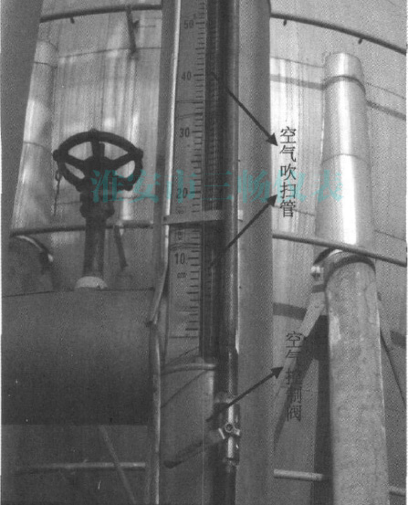 為了保證乙烯球罐安全穩(wěn)定運行,投用初期磁翻板液面計結(jié)冰就很嚴重,開始以為是由于施工時保冷材料沒有安裝好、保冷材料的厚度不夠等原因造成的,因此對保冷材料全部重新安裝并增加了保冷材料的厚度,但效果不明顯。后又組織崗位操作工對耐酸堿磁翻板液位計上的冰定期進行人工清理,由于乙烯球罐容積大(1500m³),液位計長約12米,清理難度非常大,在清除作業(yè)過程中涉及高空等危險作業(yè),增加了員工的工作危險性和勞動強度,而且經(jīng)過人工清理的液位計在運行3~4小時后,又開始掛霜結(jié)冰,運行周期太短。另外每次在清除結(jié)冰的過程中,都會對磁翻板液面計和閥座有所損傷,*終可導(dǎo)致磁翻板液面計損壞報廢。后來又嘗試切斷液面計根部閥切斷,采用自然化冰的方式來清除掛冰,這樣雖然減小了操作工的勞動強度,但這種辦法除冰時間太長,對安全生產(chǎn)不利。為了徹底解決磁翻板掛冰的現(xiàn)象,經(jīng)過反復(fù)論證,技術(shù)人員提出用工廠空氣進行吹掃的方案并在其中一具乙烯球罐上進行試驗。通過試驗發(fā)現(xiàn)用工廠空氣連續(xù)吹掃掛冰的液位計,基本能夠徹底解決耐酸堿磁翻板液位計掛冰。