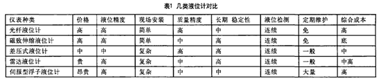 對市場中應用較為廣泛的幾類液位計綜合對比。