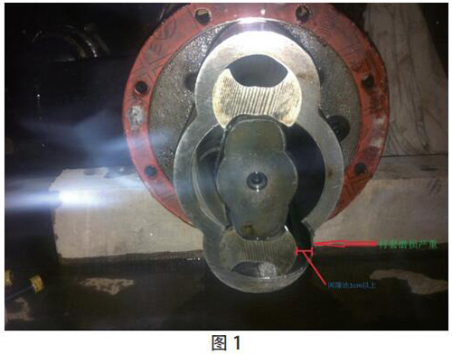 2015 年 8 月 10 日 17:50 機組在運行過程中“機組高位油箱事故低油位動作”事故停機?,F(xiàn)場檢查發(fā)現(xiàn)機組高位油箱油位為 60mm,低于下限值 90mm。進一步檢查發(fā)現(xiàn),稀油站 2# 低壓油泵空轉(zhuǎn),沒有打油,振動、聲音較大。18:18 維護人員對 2# 低壓油泵進行了搶修拆解。發(fā)現(xiàn)油泵從動螺桿與襯套間隙過大,達 1cm 以上,襯套磨損嚴(yán)重(見圖 1)。油泵損壞,無法打油。