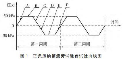 正負壓油箱疲勞試驗臺的試驗曲線如圖1所 示,工作原理如圖2所示。