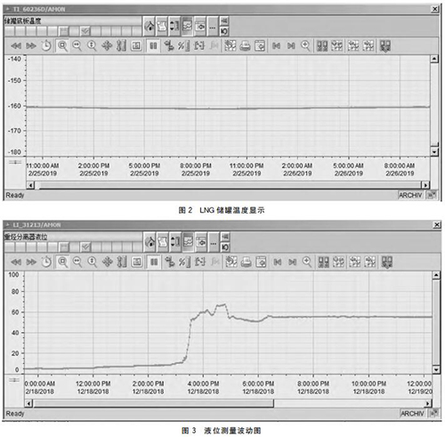 然后利用多孔法蘭(結合LNG項目的實際情況來選擇法蘭的孔數(shù)以及尺寸大小),將其接到LNG罐頂?shù)臏囟茸兯推鹘泳€箱內(nèi)部,再使用多芯電纜把4~20mA信號發(fā)送到控制系統(tǒng)?,F(xiàn)場安裝RTD熱電阻建議選用雙支,方便以后檢修更換。圖2為LNG儲罐溫度顯示。