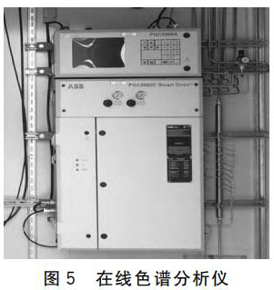 (1)利用電加熱氣化取樣探頭,把測量介質(zhì)引入在線色譜分析儀,實時分析氣體組分。在使用在線色譜分析儀(圖5)時,需要配合標氣及載氣,提前對色譜進行標定。預處理部分,先把每個取樣管路取下來吹掃5~10min(取樣探頭壓力設定為2~3kg),保證沒有雜質(zhì)摻入,然后接上管線。要注意定期檢查色譜載氣(H2或者N2)使用情況,及時更換。如果更換不及時,在使用完之前,*好停用色譜,防止燒壞檢測器。