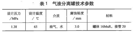 某煉化裝置1臺(tái)立式氣液分離罐(規(guī)格DN2400X20,以下簡(jiǎn)稱分離罐),技術(shù)參數(shù)見表1。在今年12月運(yùn)行中液位計(jì)接管(425x3mm)的外伸部位發(fā)生泄漏,進(jìn)行停工搶修。