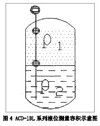磁致伸縮式液位計(jì)出廠是根據(jù)用戶提供的“上密度”和“下密度”確定浮子的重量。在測量界面時(shí),實(shí)際上是浮子浮在界面上,所受的浮力和重力相等。公式為:W=F=Vlpl+(V-Vl)p2 W—浮子重量;F—浮子受到的浮力;V1—浸入下液體的體積;V—浮子體積。