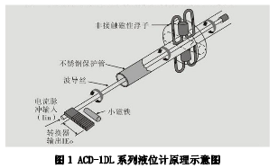 南10站試用磁致伸縮液位計(jì)類型為ACD-1DL系列,該類型液位計(jì)主要傳輸部分為:波導(dǎo)絲、浮子磁環(huán)、永久磁環(huán)、傳輸部分及檢測機(jī)構(gòu)等部分組成。傳感器的電路在波導(dǎo)絲上激勵(lì)出脈沖電流,該電流沿波導(dǎo)絲傳播時(shí)會(huì)在波導(dǎo)絲的周圍產(chǎn)生脈沖電流磁場。脈沖電流磁場與浮子產(chǎn)生的磁場相遇,在相遇空間產(chǎn)生一個(gè)扭轉(zhuǎn)波脈沖,脈沖沿波導(dǎo)絲傳回并由檢出機(jī)構(gòu)檢出,通過測量脈沖電流與扭轉(zhuǎn)波的時(shí)間差可以精確地確定浮子所在液面位置。