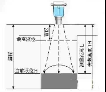 儀表量程指儀表能夠測量的距離,安裝高度TH應(yīng)小于量程。