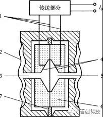 1.導(dǎo)線;2.隔離膜片;3,充灌液;4.固定電*; 5.測(cè)量膜片;6.剛性絕緣體(陶瓷);7.浮動(dòng)膜片圖