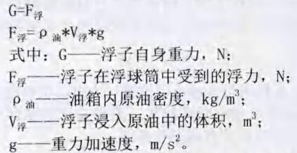 通過上式可以看出,浮球桶進(jìn)入液體體積約為1/2左右,說明其對(duì)于密度為0.92g/c3的中到重質(zhì)油測量液位非常合適,避免了人工測量產(chǎn)生的人為誤差,更對(duì)于測量人員靠近罐口可能產(chǎn)生的危險(xiǎn)進(jìn)行了有效的規(guī)避。