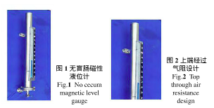 ③ 測量結(jié)果誤差較大。現(xiàn)在正逐漸選用基于磁耦合原理設(shè)計(jì)的磁翻板液位計(jì)代替玻璃板液位計(jì),此液位計(jì)是基于阿基米德定理,磁性浮子在液體中產(chǎn)生浮力,根據(jù)磁鐵同性相斥,異性相吸的性質(zhì)制成。但傳統(tǒng)的磁翻板液位計(jì)也存在一些弊端,如其下端浮子腔為盲腸結(jié)構(gòu),設(shè)備盲腸在石油石化系統(tǒng)是1個(gè)大的安全隱患,介質(zhì)腐蝕物的積聚對該處焊縫產(chǎn)生應(yīng)力腐蝕開裂,介質(zhì)中的水分在該處沉降,冬季有產(chǎn)生凍凝的風(fēng)險(xiǎn),這些隱患時(shí)刻威脅著企業(yè)的安全。